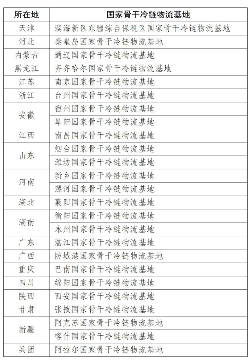 2023年国家骨干冷链物流基地建设名单